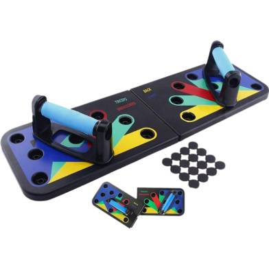 --Different color-coded push up board targets specifics muscles worked (chest, shoulders, back, and triceps)